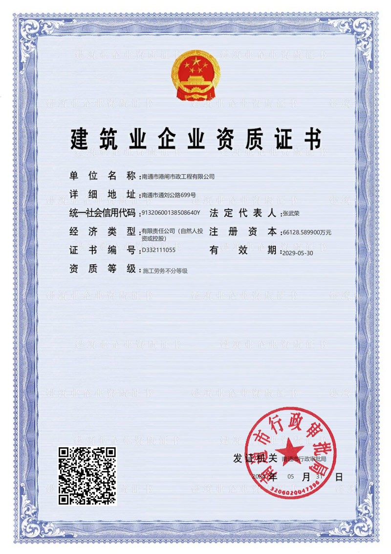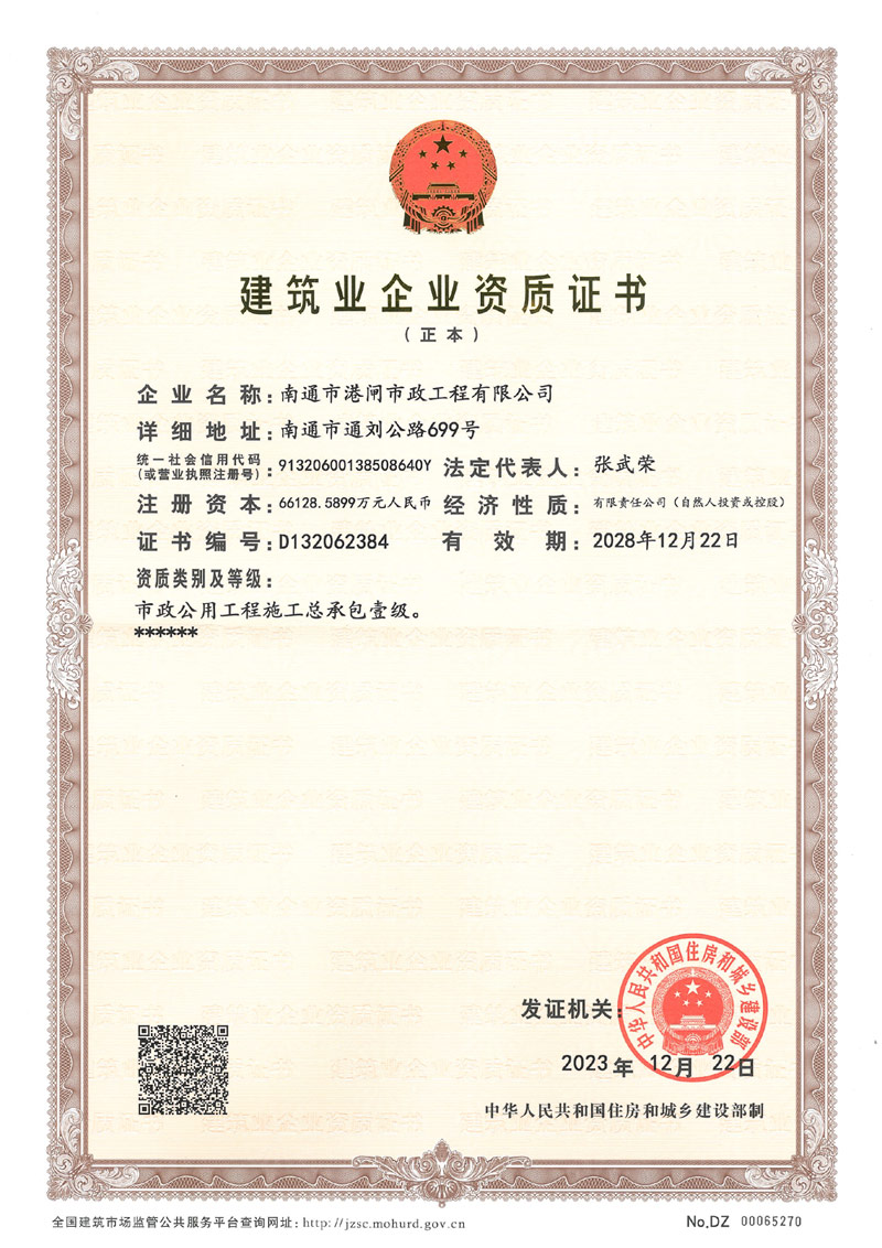 建筑業(yè)企業(yè)資質(zhì)證書(shū)(市政公用工程施工總承包壹級(jí))